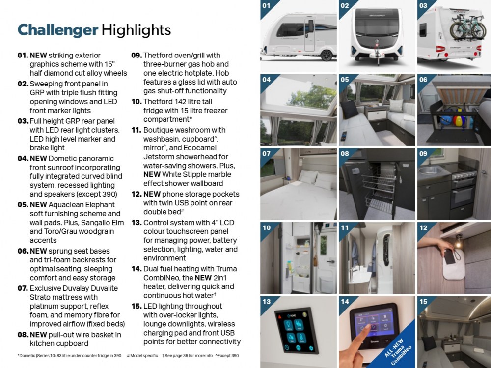 Designed for families and seasoned caravanners alike, the Challenger range offers a modern, well-equipped space at an affordable price. It builds on the essentials with added comfort, including the latest Truma CombiNeo for continuous hot water – ideal for those who enjoy a long shower or need back-to-back showers for the whole family. Challenger is made for easy getaways, comfortable living and memorable holidays, time after time.